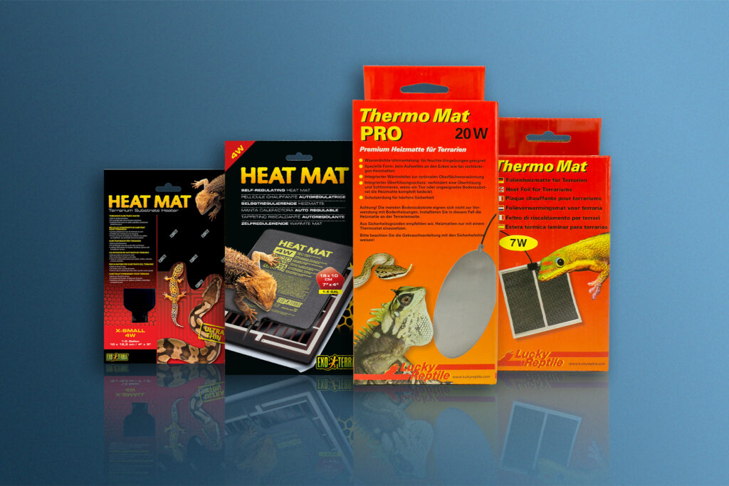 Heizmatten gehören zu den bekanntesten und am häufigsten eingesetzten Heizlösungen in der Terraristik. Bei der Auswahl der Heizmatten finden sich meist zwei Typen: Erstens die selbstklebenden Matten, welche zur festen Montage außerhalb des Terrariums gedacht sind und entweder unter dem Boden oder an die Seiten bzw. Rückwand geklebt werden. Auf diese Weise entsteht eine gleichmäßige, sanfte Wärmeversorgung von unten oder von der Seite.