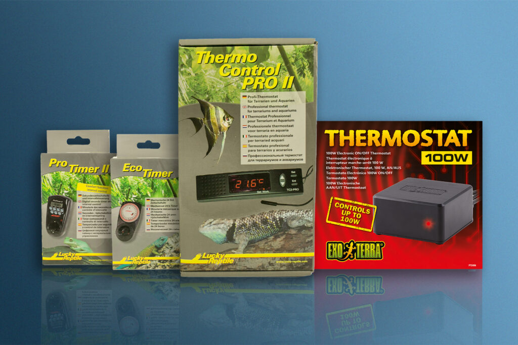 Eine zuverlässige Temperatursteuerung sorgt dafür, dass im Terrarium stets die gewünschte Temperatur herrscht, ohne dass man ständig manuell eingreifen muss. So ist der Alltag, aber auch ein kurzer Urlaub kein Problem. Digitale Thermostate, wie der Lucky Reptile Thermo Control Pro II, ermöglichen neben dem automatisierten Heizen zusätzlich eine Nachtabsenkung.